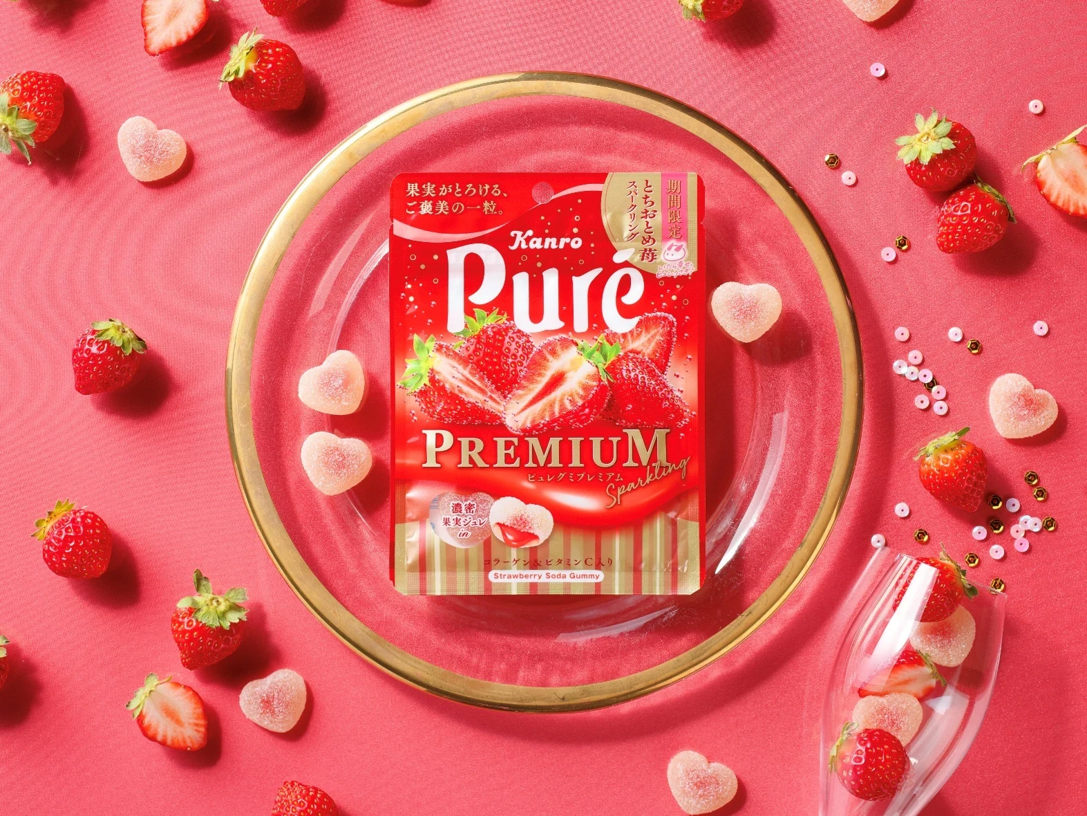 Kanro Puré Premium strawberry gummies, 54g