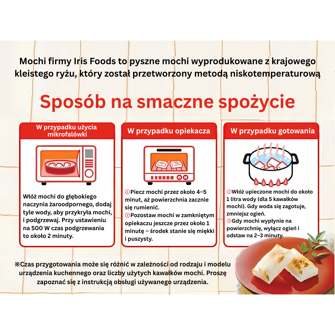 アイリスフーズの製品は、伝統的な製法で作られた高品質のもち米生地で、調理後も特徴的な柔らかく弾力のある食感を保ちます。