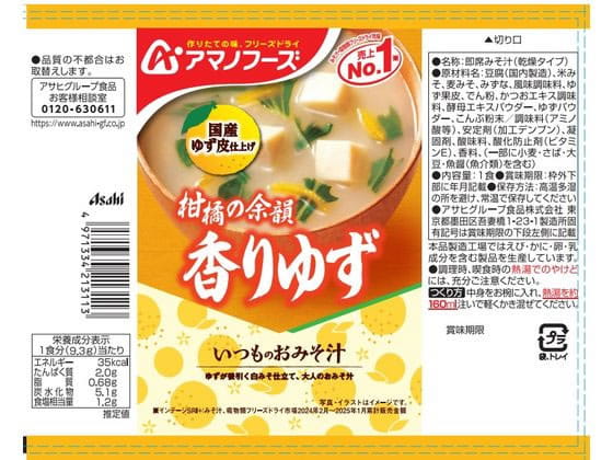 アサヒグループ食品 アマノフーズ いつもの味噌汁香りゆず  9.3g