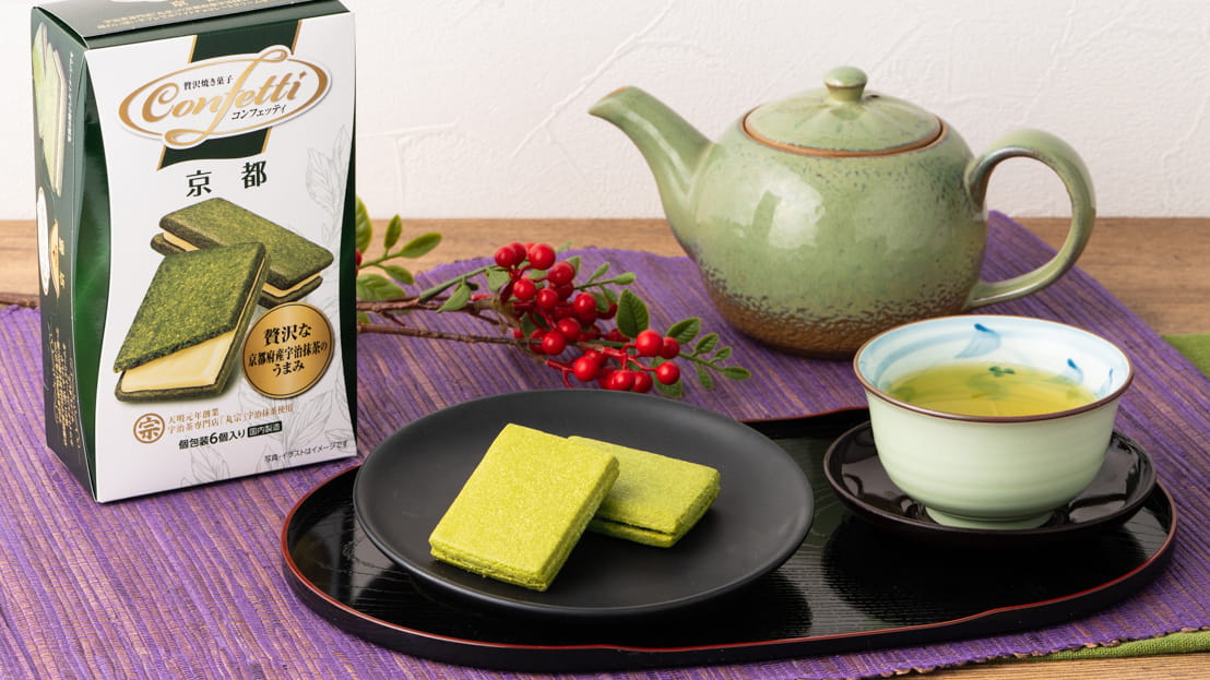Pozwól sobie na chwilę ekstrawagancji z eleganckimi ciasteczkami Confetti od firmy Ito! Confetti, jak sama nazwa wskazuje, powstały z myślą o wyjątkowych okazjach, którym należy się odpowiednie uczczenie. W edycji Kyoto otrzymasz słodką, kremową białą czekoladę zamkniętą między dwoma kruchymi, maślanymi ciasteczkami w stylu sablé - francuskich herbatników. Każde ciasteczko jest wypełnione po brzegi zieloną herbatą matcha ze słynnego Uji w Kioto, a właściwie to z kiotyjskiego sklepu Marusou specjalizującego się w herbacie Uji, którego historia sięga końca XVIII wieku. To niepowtarzalna słodycz o wytwornym wykończeniu, która doda wystawności każdej okazji! W opakowaniu znajduje się 6 ciasteczek Confetti Kyoto.