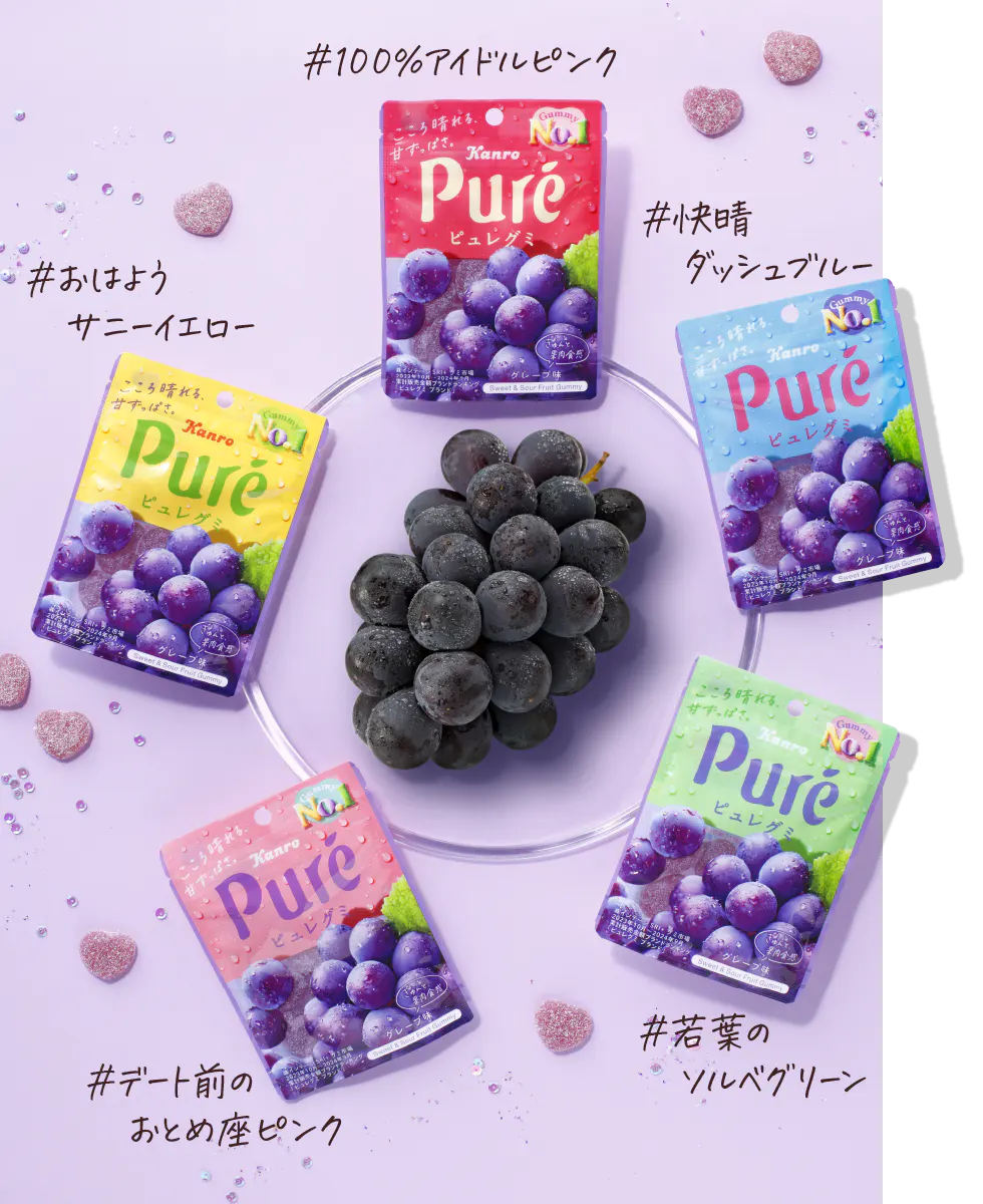 カンロは高品質なお菓子作りで知られるブランド。ピュレグミはぷるんと柔らかく、ほどよい酸味と自然な甘さが楽しめます。まるで完熟ぶどうをそのまま味わっているようなジューシーさが魅力です。 -