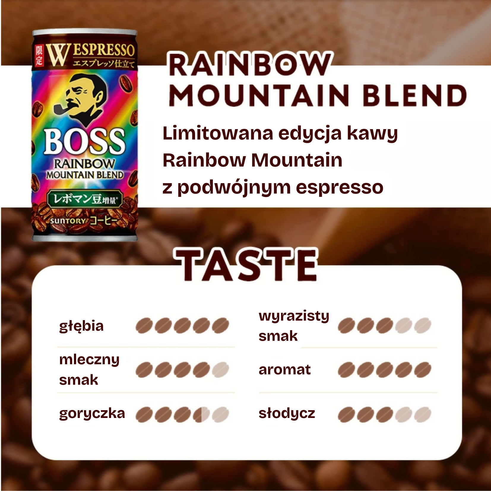 グアテマラ国内の7地域から厳選しグアテマラ全国コーヒー協会によって認証を与えられた高級豆コーヒー豆“レインボーマウンテン豆”を使用した、フルボディタイプの味わいが特長の商品です。「レインボーマウンテン豆」の増量により、フルボディの飲みごたえをさらに進化させ、より満足度の高い味わいに仕上げられまし