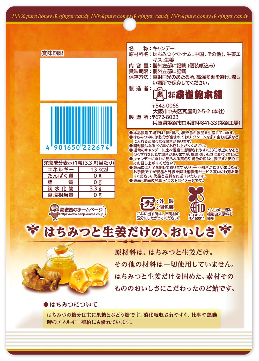 扇雀飴本舗 はちみつと生姜100%のど飴 50g