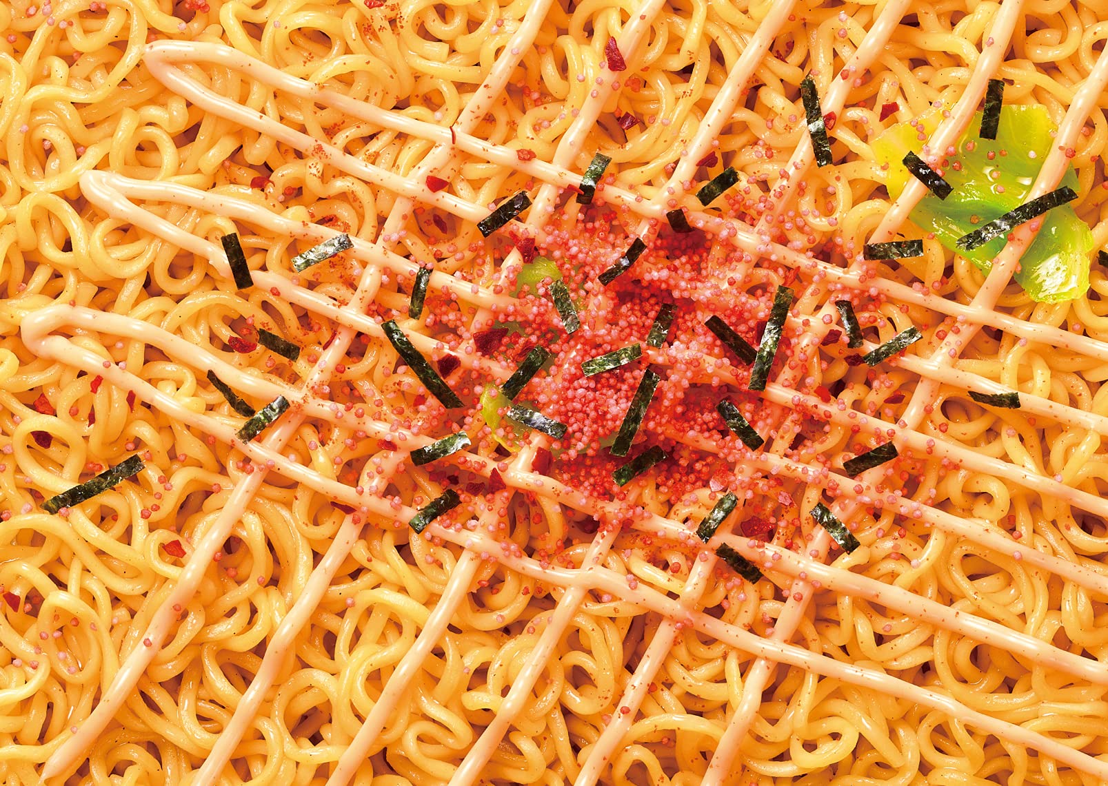 具材はキャベツ、顆粒明太子、刻み海苔、トウガラシ粉末を組合せたふりかけ付。