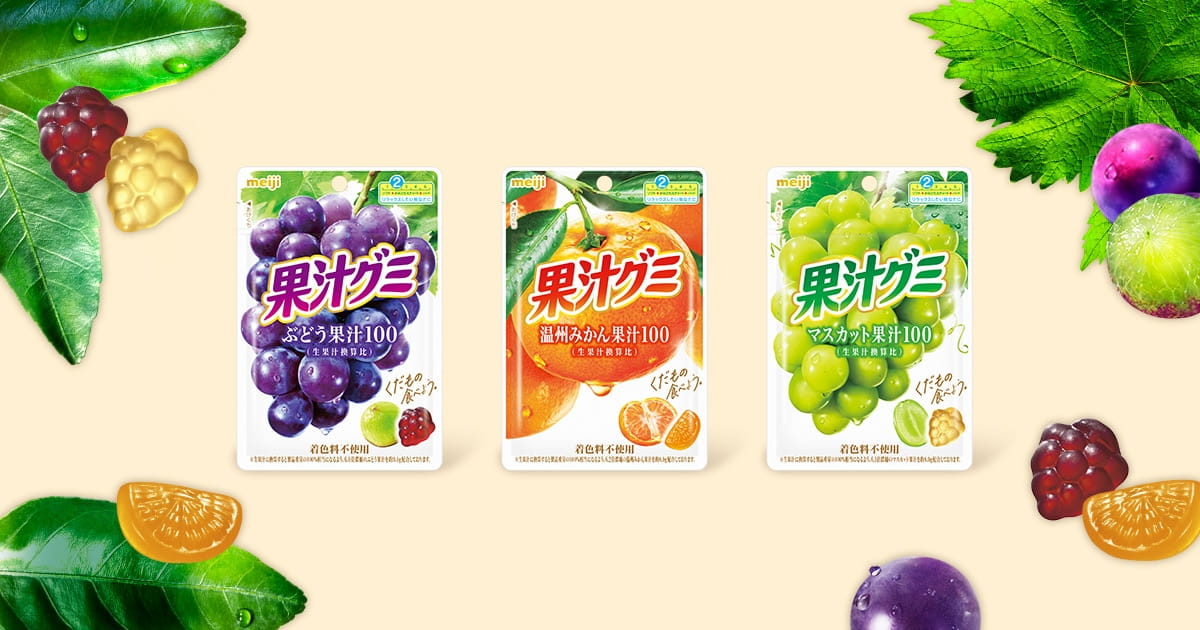 人気のグミ、明治グミ赤ぶどう味をご紹介します。100%赤ぶどうジュース使用、合成着色料や香料は一切不使用。果実本来の味わいと弾力のある食感が特徴です。