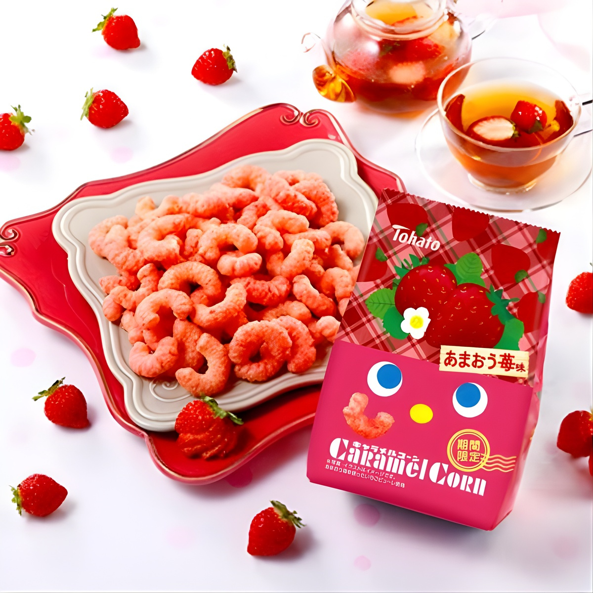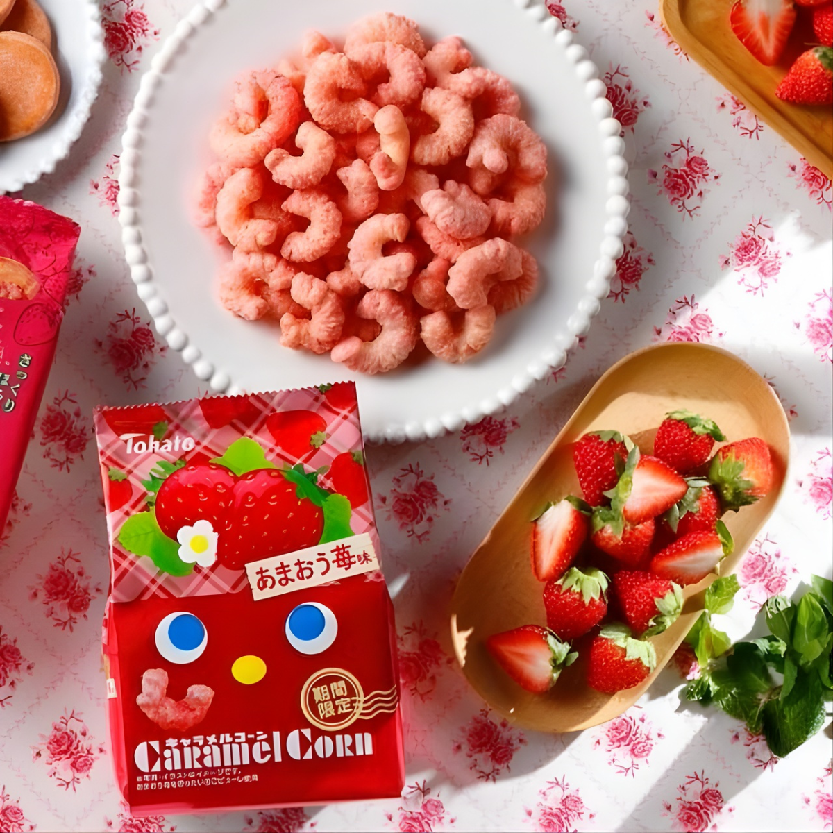 ふんわり、サクサク、そしてすうっととろけるキャラメルコーンに、あまおう苺味が登場です!
