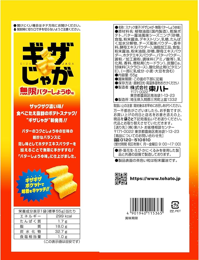 東ハト ギザじゃが 無限バターしょうゆ味, 55 g