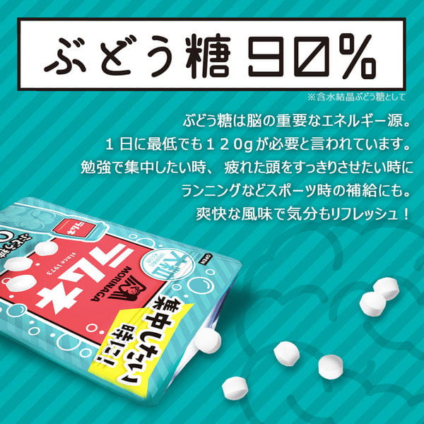 Wypróbuj kultowych, japońskich cukierków pudrowych Ramune od firmy Morinaga! Ramune to nie tylko określenie na słodkie oranżady z tradycyjnym, kulkowym zamknięciem, ale to także popularne w Japonii od dekad cukierki pudrowe. Ramune od firmy Morinaga zostały wypuszczone w 1973 roku jako nowy rodzaj cukierków, do produkcji których po raz pierwszy użyto glukozy zamiast cukru. Dzięki obecności glukozy cukierki posiadają przyjemnie orzeźwiający smak dzięki chłodzącemu odczuciu na języku. Ponieważ te ramune są o połowę większe od klasycznych ramune firmy Morinaga i składają się w aż 90% z glukozy, sprawdzą się znakomicie jako słodki przerywnik w pracy i nauce, który doładuje twoją koncentrację i pamięć.
