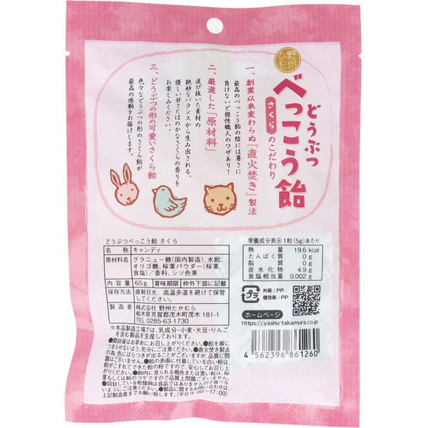野州たかむら どうぶつべっこう飴 さくら 65g