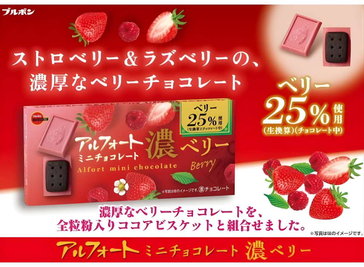 Bourbon Alfort Mini Chocolate truskawkowo-malinowe to mała, owocowa przyjemność, która pozwala cieszyć się japońskim smakiem w codziennych chwilach.