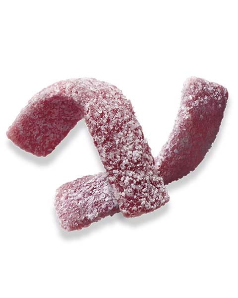 Każda miękka wstążka żelka zachwyca głębokim, słodko-kwaskowym profilem winogronowym inspirowanym odmianami znanymi z południa Europy. Aromat jest wyrazisty, lecz naturalny – idealny, jeśli lubisz owocowe przekąski o pełnym, soczystym charakterze.