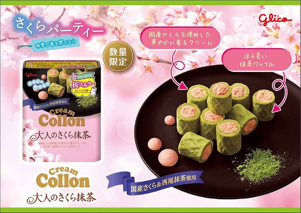 Glico Cream Collon to wyjątkowa japońska przekąska, która przeniesie Cię wprost do serca japońskiej wiosny dzięki połączeniu dwóch kultowych smaków: delikatnej wiśniowej sakury oraz intensywnej zielonej herbaty matcha. Te lekkie, rurkowe ciasteczka wypełnione są aksamitnym kremem o subtelnym aromacie sakury i ziemistych nutach matchy, tworząc harmonijną kompozycję smakową, którą pokocha każdy miłośnik japońskich słodyczy.