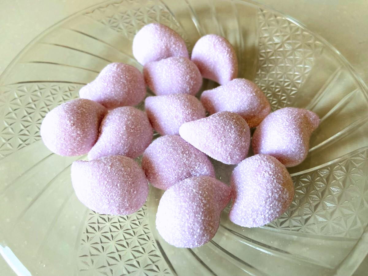 Ta wersja zachwyci Cię orzeźwiającym smakiem winogronowej oranżady, dobrze znanej w Japonii pod postacią musujących napojów gazowanych. Pianki są miękkie, puszyste i delikatnie kwaskowe, dzięki czemu przypominają małą owocową chmurkę, która rozpływa się w ustach.