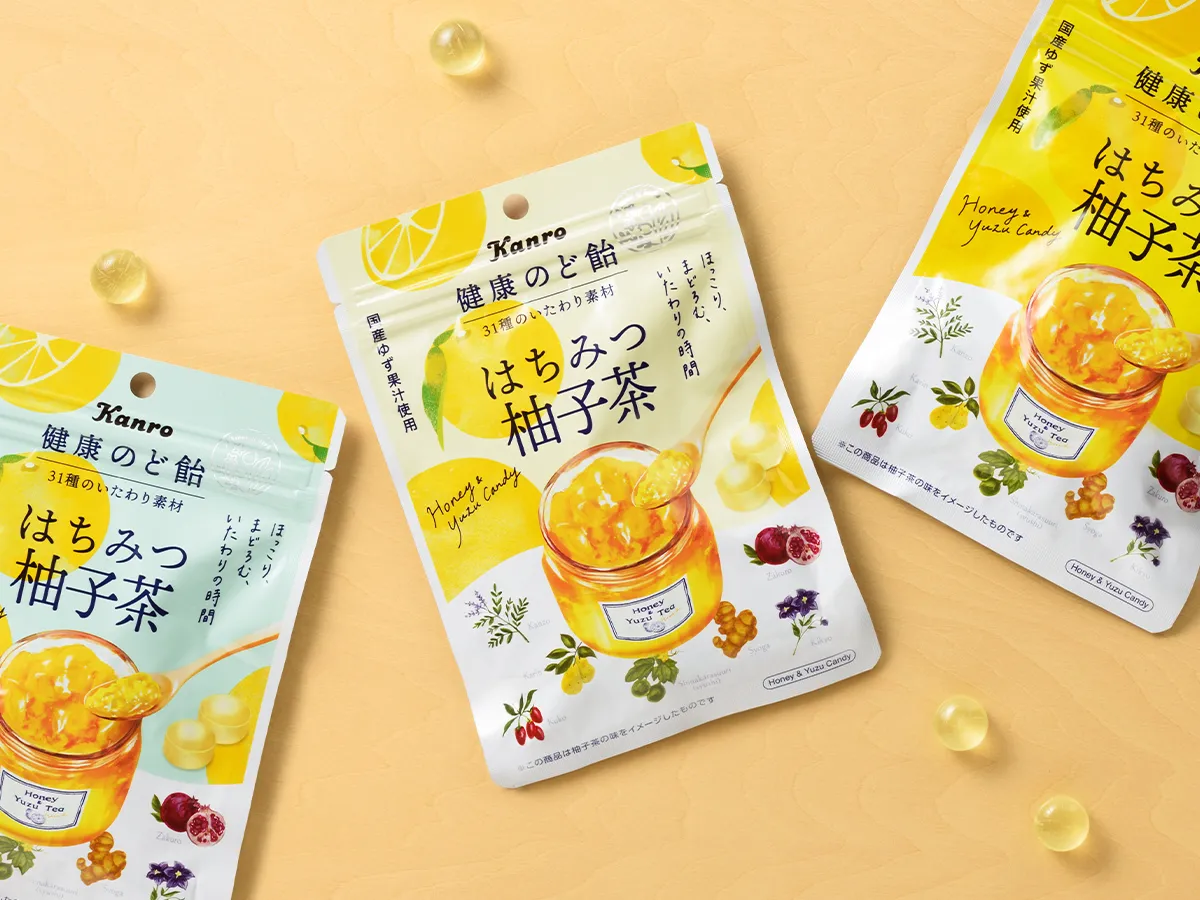 Kanro cukierki o smaku miodu i herbaty z yuzu, 80g