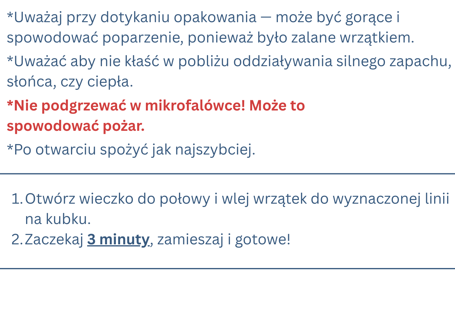 Szybka i prosta przygotowanie: wystarczy zalać gorącą wodą, poczekać 3 minuty i gotowe!